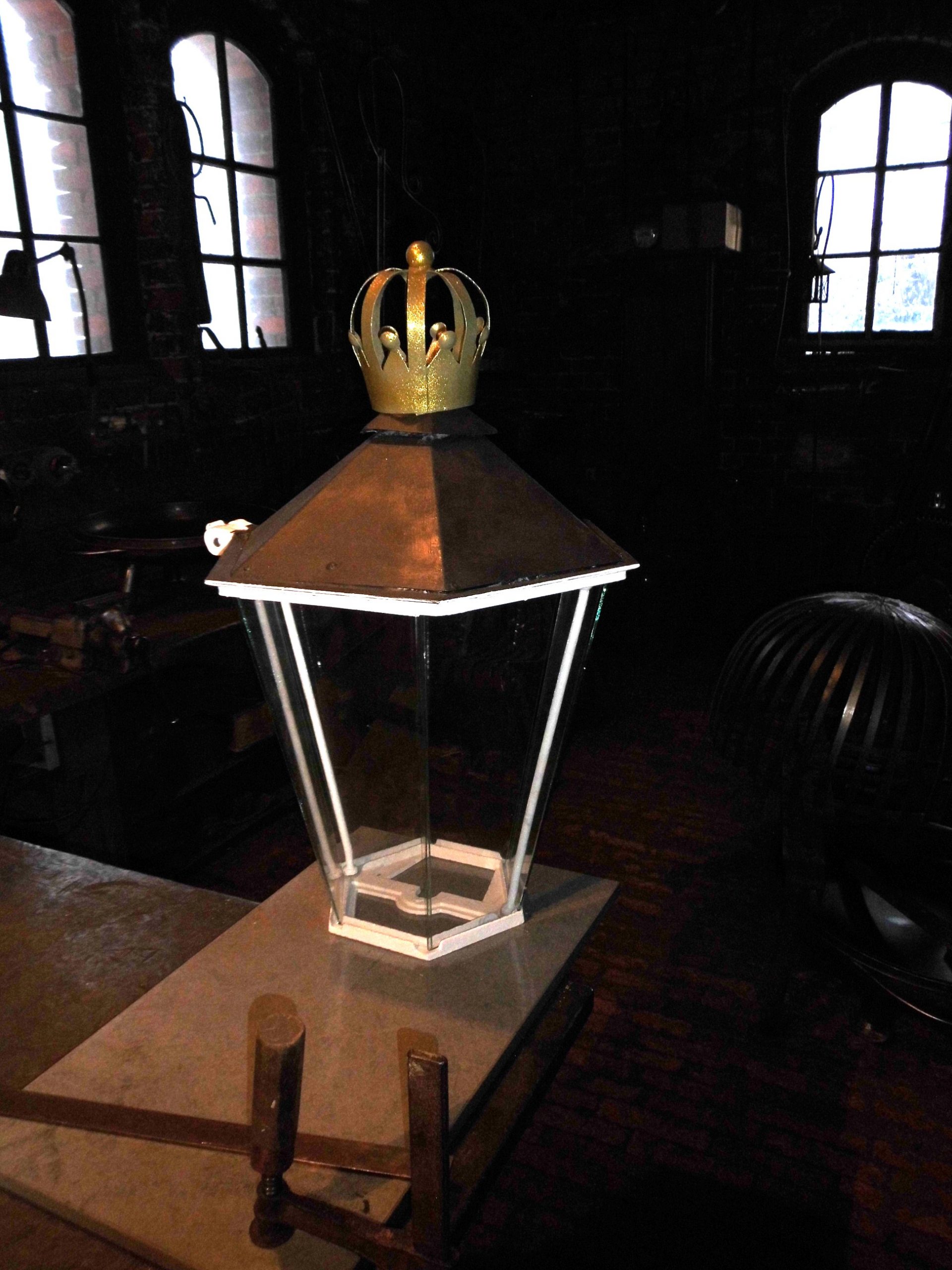 Dazu wurde die Laterne in ihre Einzelteile zerlegt, gerichtet, Brüche gelötet.